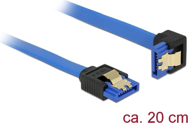 Delock Kabel SATA 6 Gb/s Buchse gerade > SATA Buchse unten gewinkelt 20 cm blau mit Goldclips (85089)
