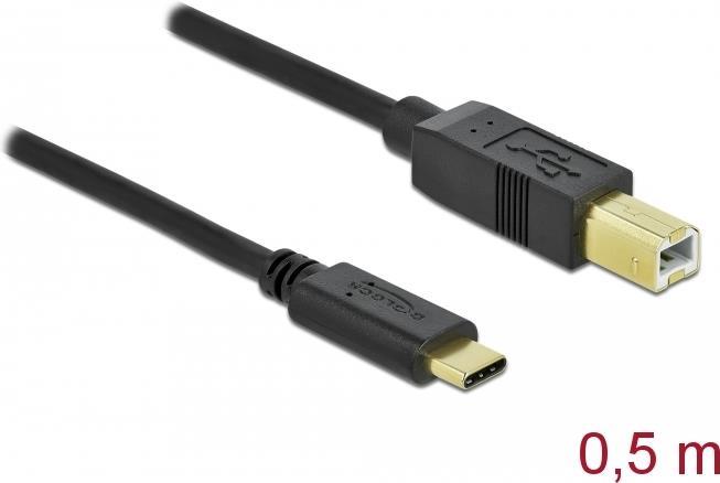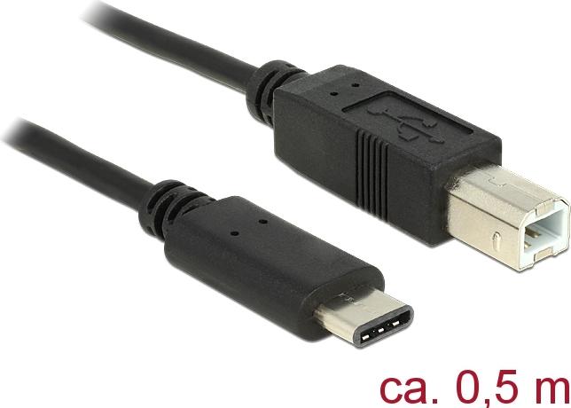 DeLOCK - USB-Kabel - USB Typ C (M) bis USB Type B (M) - USB2.0 - 3 A - 50cm - Schwarz (83328)