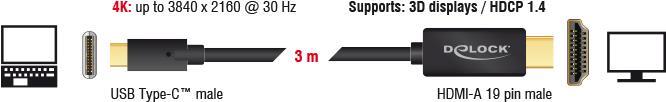 Dieses Kabel von Delock ermöglicht den Anschluss eines HDMI Monitors an einen PC oder ein Notebook mit USB-C oder Thunderbolt 3 Schnittstelle, wie z. B. ein MacBook oder ein Chromebook. Die Schnittstelle muss den Displayport Alternate Mode unterstützen.