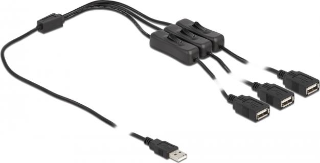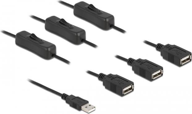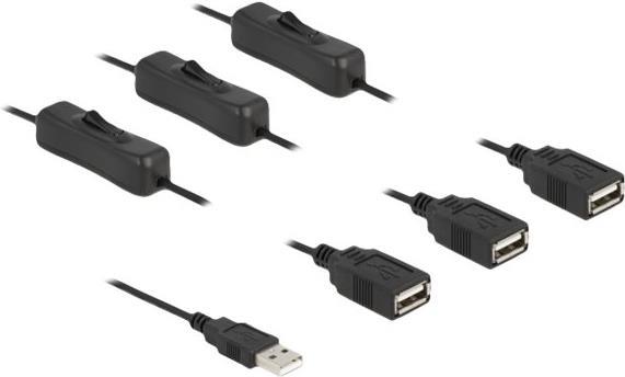 Dieses Kabel von Delock dient zum Anschluss an eine Stromquelle mit USB Typ-A Port und ermöglicht die Stromversorgung von bis zu drei Geräten mit USB Typ-A Stecker. Durch Betätigung des Ein- / Ausschalters kann die Stromzufuhr für ein mit dem Kabel verbundenes Gerät an- bzw. ausgeschaltet werden. Dadurch ist es nicht notwendig, das Kabel aus der Buchse zu entfernen, um es von der Stromzufuhr zu trennen.