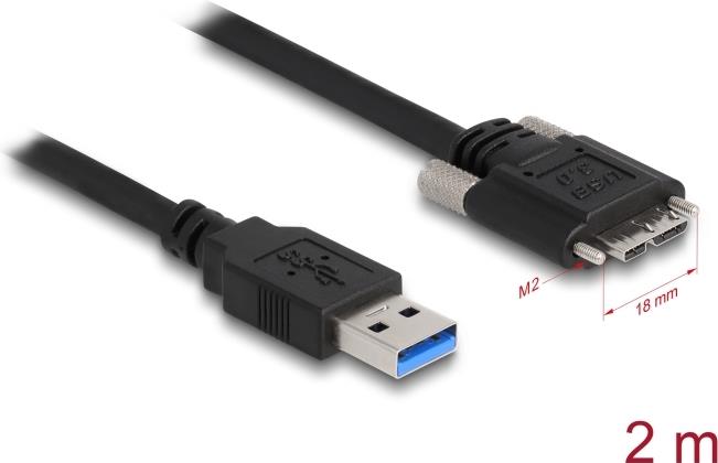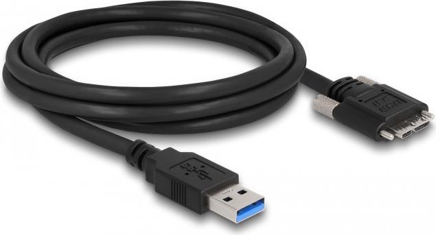 Delock - USB-Kabel - USB Typ A (M) bis Micro-USB Type B (M) - USB3.0 - 2,0m - Daumenschrauben - Schwarz (87800)