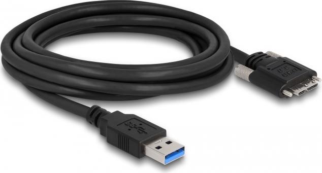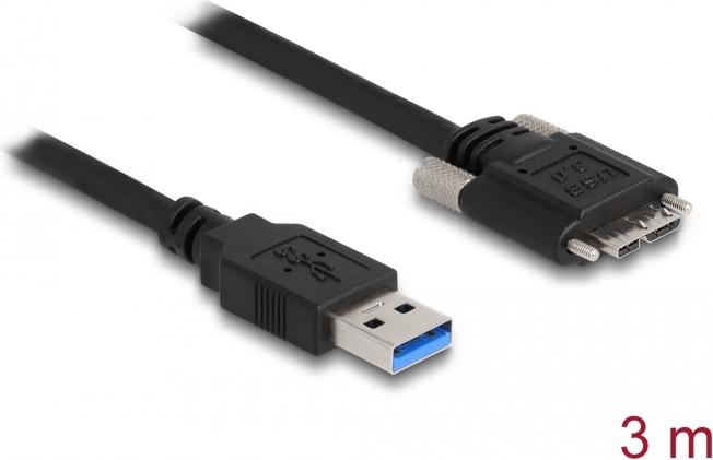 Delock - USB-Kabel - USB Typ A (M) bis Micro-USB Type B (M) - USB3.0 - 3,0m - Daumenschrauben - Schwarz (87801)