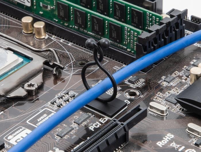 Die Kabeldriller sind an der Unterseite mit einem Klebepad versehen und können somit leicht und unkompliziert z. B. in einem PC Gehäuse befestigt werden.