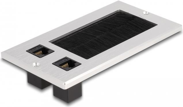 Delock Kabeldurchführung mit Bürste und 2 x RJ45 Modul Cat.6 Aluminum (66896)