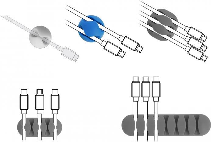 Kabelhalter (grau), Kabelhalter (schwarz), Kabelhalter mit 2 Durchführungen (schwarz), Kabelhalter mit 3 Durchführungen (weiß), Kabelhalter mit 5 Durchführungen (weiß), Kabelhalter mit 7 Durchführungen (grau) |