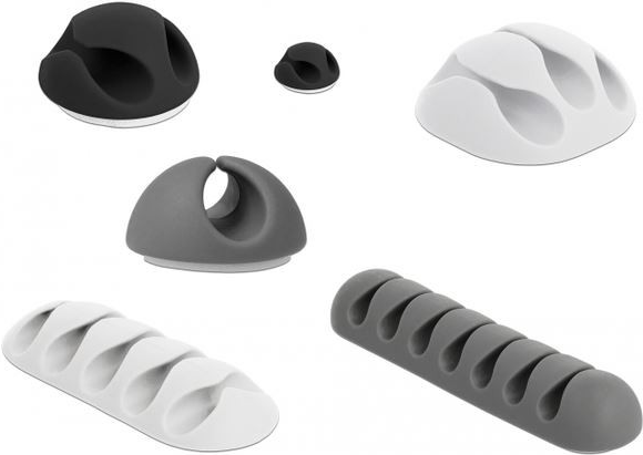 DeLOCK Combo Set - Kabelhalter-Kit - Tisch montierbar, Oberfläche montierbar, geeignet für Wandmontage - Grau, Schwarz, weiß (18300)