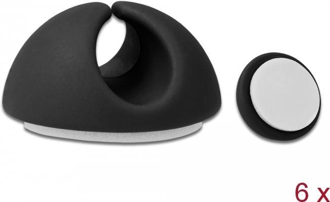 DeLOCK - Kabelhalter - Tisch montierbar, Oberfläche montierbar, geeignet für Wandmontage - Schwarz (Packung mit 6) (18342)