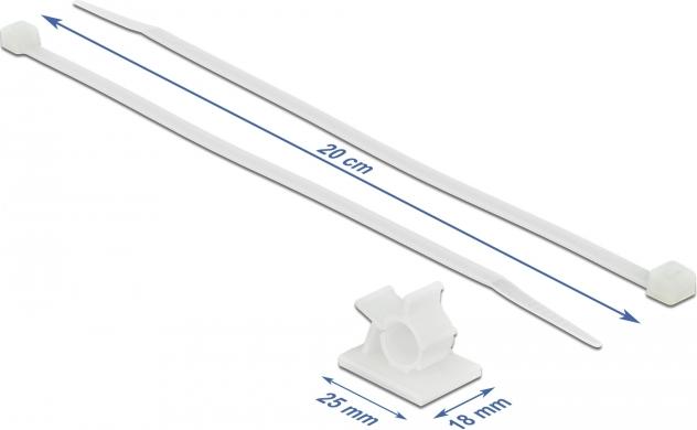 Delock - Kabelbinder-Kit - Tisch montierbar, geeignet für Wandmontage - 20 cm - weiß