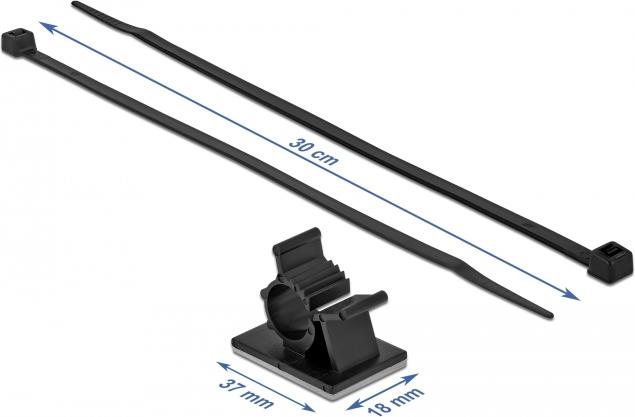 Delock - Kabelbinder-Kit - Tisch montierbar, geeignet für Wandmontage - 30 cm - Schwarz