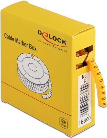 DeLOCK Cable Marker Box, No. 6 - Leitungs- / Kabel-Marker (vorgedruckt) - Gelb (Packung mit 500) (18360)