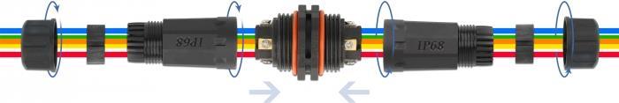 Der Kabelverbinder bietet erhöhten Schutz vor Verschmutzung und Feuchtigkeit für den Anschluss von Stromkabeln im Außenbereich.