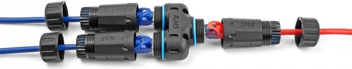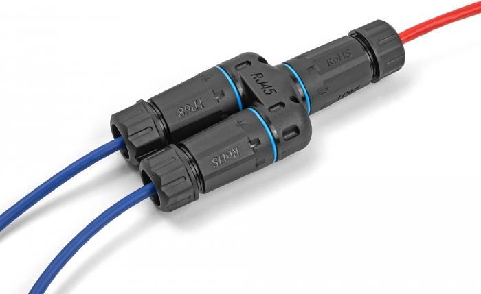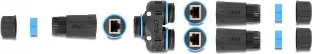 Die Kupplung bietet erhöhten Schutz vor Schmutz und Feuchtigkeit für den Anschluss der Netzwerkkabel.
