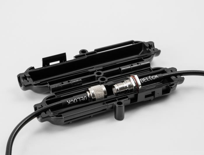 Diese Schutzbox von Delock dient zur sicheren Verbindung von Steckern und Kupplungen und schützt vor Beschädigung.