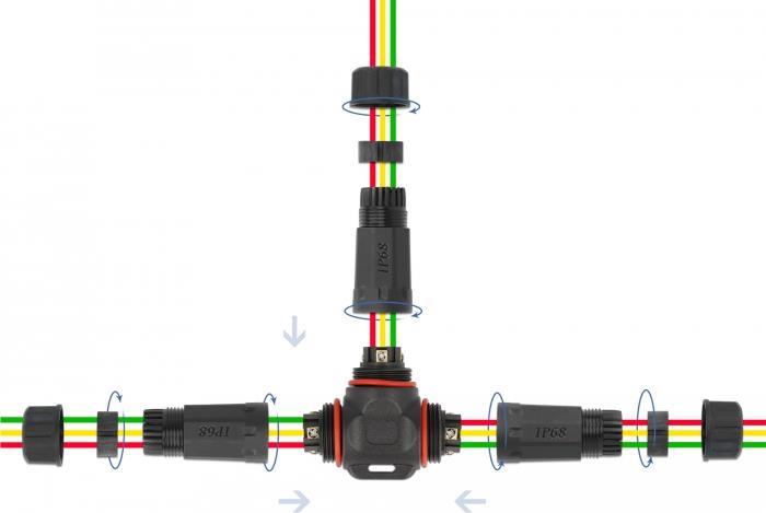 Der Kabelverbinder bietet erhöhten Schutz vor Verschmutzung und Feuchtigkeit für den Anschluss von Stromkabeln im Außenbereich.