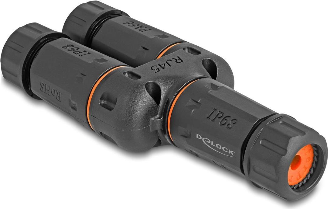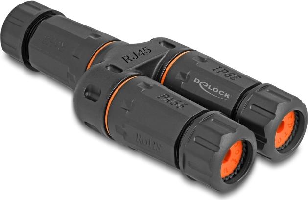 • Delock Kabelverbinder Y-Adapter RJ45 Buchse zu 2 x RJ45 Buchse Cat.6 IP68 staub- und wasserdicht Outdoor (88143)