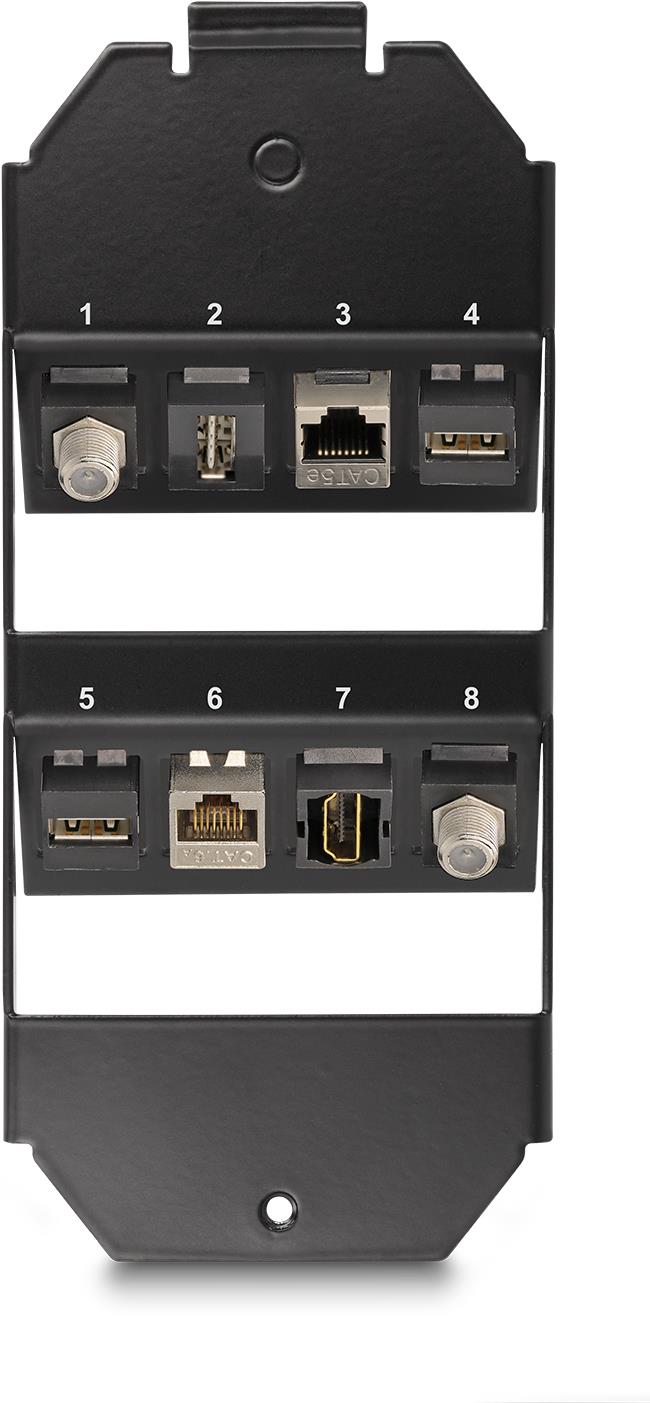 Entdecken Sie die modulare Einsatzhalterung von Delock, eine unverzichtbare Lösung für die effiziente Organisation Ihres Netzwerkzubehörs. Dieses Produkt, das für Keystone-Ports mit den Maßen 19,2 x 14,9 mm konzipiert ist, unterstützt bis zu 8 Ports und bietet ausreichend Anschlussmöglichkeiten für verschiedene Setups. Die Metallkonstruktion gewährleistet Langlebigkeit und eine sichere Installation. Verpackt in einem Polybeutel mit Reißverschluss ist diese Halterung während des Transports geschützt und lässt sich leicht aufbewahren, so dass sie sich sowohl für professionelle als auch für private Umgebungen eignet. Verbessern Sie Ihre Netzwerkeinrichtung mit diesem unverzichtbaren Zubehör von Delock.