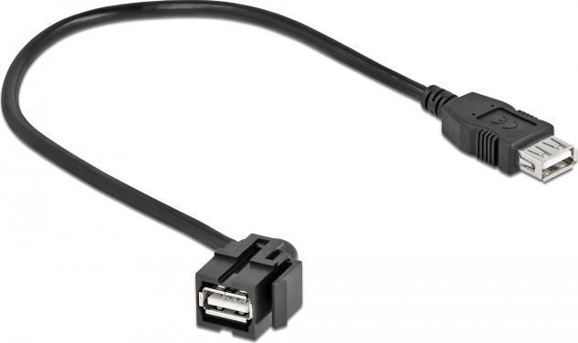 Delock Keystone Modul USB 2.0 A Buchse 110° > USB 2.0 A Buchse mit Kabel schwarz (86869)