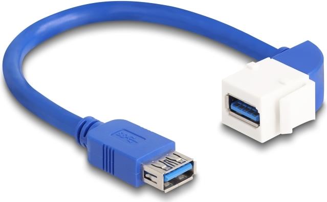 Delock - USB-Verlängerungskabel - USB Typ A (W) gerade zu USB Typ A (W) gewinkelt - USB 3,0 - 20cm - up to 5 Gbps data transfer rate, Keystone-Buchse - Blau, weiß (86964)