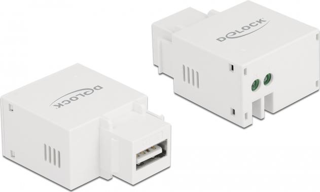 Dieses Modul von Delock stellt einen USB Typ-A Ladeport zur Verfügung. Durch die standardisierten Abmessungen ist es zur einfachen Snap-In Montage in verschiedene Halterungen, wie z. B. Keystone Patchpanel, Dosen oder Gehäuse geeignet.