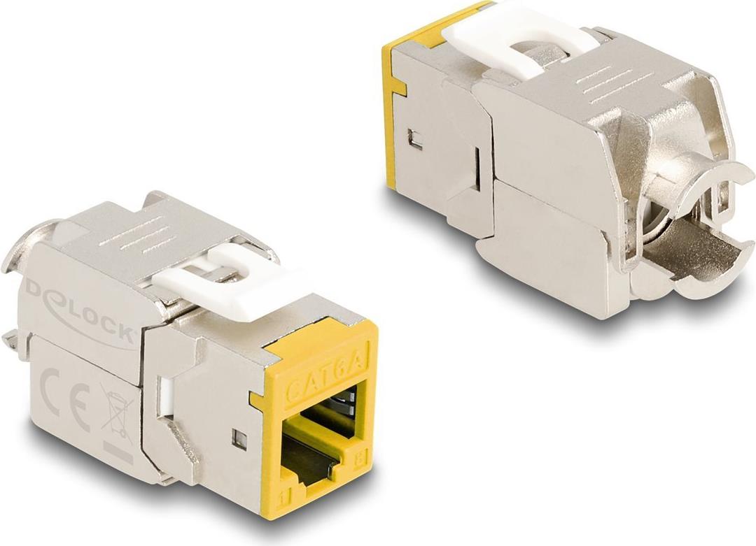 Das Delock Keystone-Modul ist eine vielseitige und effiziente Lösung für Ihre Netzwerkanforderungen. Es wurde zur Unterstützung von CAT 6a-Verkabelung entwickelt, kann eine Vielzahl von Kabeldurchmessern aufnehmen und ist mit Keystone-Anschlüssen mit spezifischen Abmessungen kompatibel. Seine abgeschirmte Funktion gewährleistet eine zuverlässige und störungsfreie Verbindung und eignet sich daher für Hochgeschwindigkeitsnetzwerke. Der werkzeuglose Installationsprozess des Moduls vereinfacht die Einrichtung, während die mitgelieferten Kabelmanager und Kabelbinder für Ordnung am Arbeitsplatz sorgen. Mit der Fähigkeit, sowohl RJ-45- als auch LSA-Anschlüsse zu unterstützen, und seiner Kompatibilität mit T568A/B-Verkabelungsschemata ist dieser modulare Einsatz eine umfassende Lösung für die Schaffung effizienter und vielseitiger Netzwerkverbindungen.