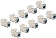 Das Delock Keystone-Modul ist eine vielseitige und dauerhafte Lösung für Ihre Netzwerkanforderungen. Es wurde für eine einfache, werkzeuglose Installation entwickelt und unterstützt sowohl Massiv- als auch Litzendrähte von 22 bis 26 AWG und eignet sich für Kabeldurchmesser von 5,0 bis 8,5 mm. Dieser modulare Einsatz nutzt die STP-Technologie (Shielded Twisted Pair), um Interferenzen zu minimieren und eine zuverlässige und hochwertige Verbindung zu gewährleisten. Die Konstruktion aus Zinkdruckguss sorgt für Langlebigkeit und macht ihn zu einer idealen Wahl für Patchpanels, Dosen und Komponenten. Das Paket enthält außerdem einen Kabelmanager und einen Kabelbinder und bietet somit alles, was für eine ordentliche und effiziente Netzwerkeinrichtung benötigt wird.