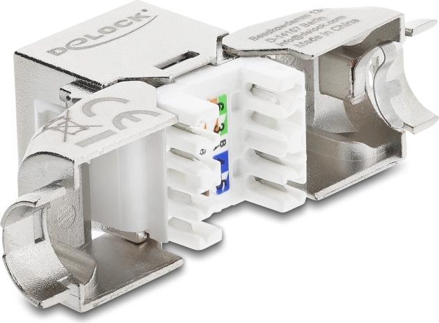 Das Delock Keystone-Modul wurde für robuste Netzwerklösungen entwickelt und bietet eine abgeschirmte Verbindung, die die Signalintegrität verbessert. Mit einem um 90° abgewinkelten RJ-45-Anschluss auf der linken Seite und einem LSA-Anschluss auf der rechten Seite sorgt es für eine effiziente Platzausnutzung und einfache Zugänglichkeit. Das werkzeuglose Design ermöglicht eine schnelle Installation und macht es zur idealen Wahl für Profis und Heimwerker, die eine zuverlässige Leistung in CAT 6a-Anwendungen suchen. Dieses Keystone-Modul besteht aus einem robusten Zinkdruckgussgehäuse und bietet eine zuverlässige und stabile Verbindung. Es unterstützt American Wire Gauge (AWG)-Größen von 22 bis 24 und eignet sich für verschiedene Installationsanforderungen unter Einhaltung der T568A/B-Verkabelungsschemata. Dieses Modul vereint Funktionalität und Komfort und ist somit eine wertvolle Ergänzung für jede Netzwerkkonfiguration.