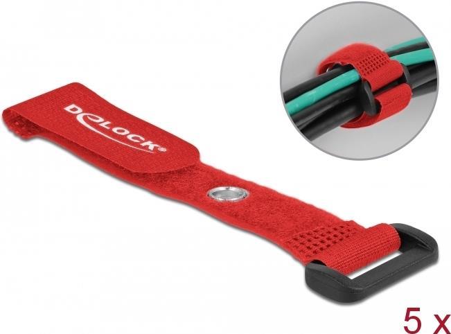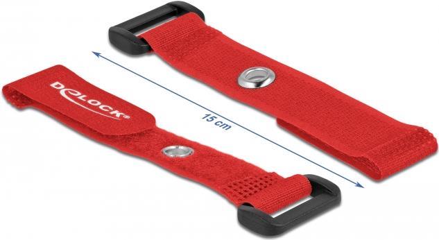 Delock - Klettverschluss-Cinchkabelbinder - 15cm - Rot (Packung mit 5) (19538)