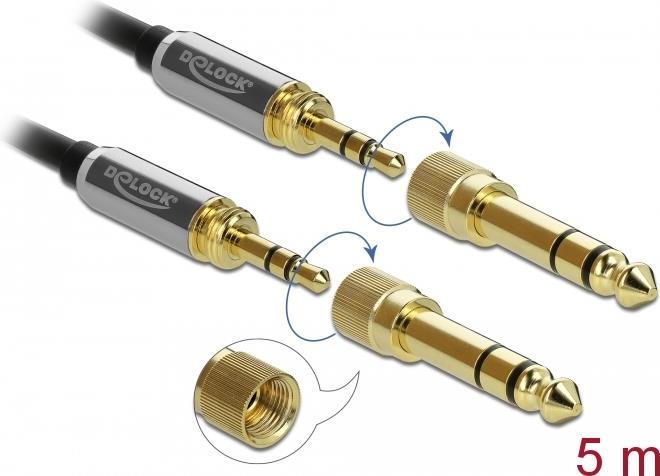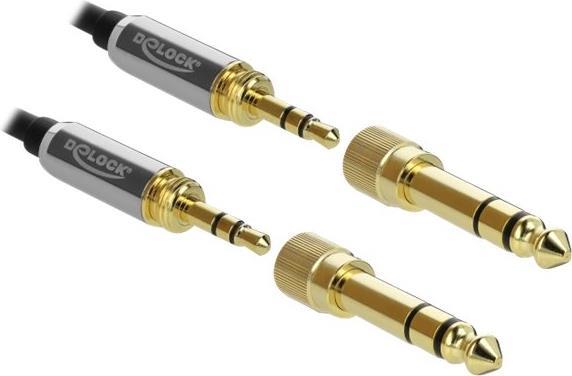 Dieses Klinkenkabel von Delock kann zum Anschluss diverser Audiogeräte mit 3,5 mm bzw. 6,35 mm Klinkenbuchse eingesetzt werden. Die beiliegenden Klinkenadapter lassen sich auf den 3,5 mm Stecker schrauben und sorgen so für eine stabile Verbindung. Somit ist das Kabel auch zum Anschluss von Audio Geräten mit einer 6,35 mm Schnittstelle geeignet.