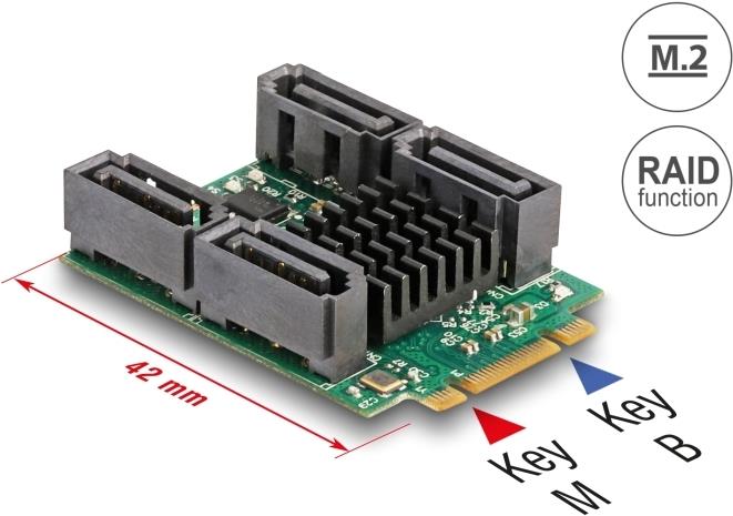 Delock Konverter M.2 Key B+M Stecker zu 4 x SATA Stecker mit RAID und HyperDuo (61062)