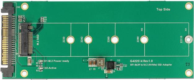 An diesen Konverter von Delock kann eine M. 2 PCIe SSD im 22110, 2280, 2260, 2242 und 2230 Format angeschlossen werden. Der Konverter kann intern über die U. 2 Schnittstelle in das System eingebunden werden.