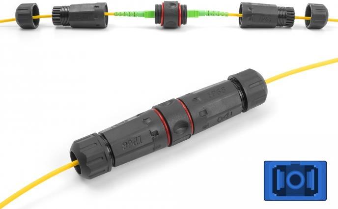 Dieser Kabelstecker von Delock verbindet zwei Glasfaserkabel miteinander und ist ideal für den Außeneinsatz geeignet. Der Koppler bietet erhöhten Schutz vor Schmutz und Feuchtigkeit für die Verbindung der Netzwerkkabel.