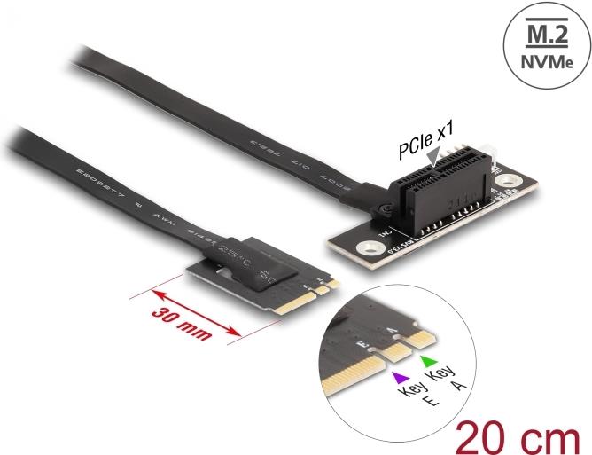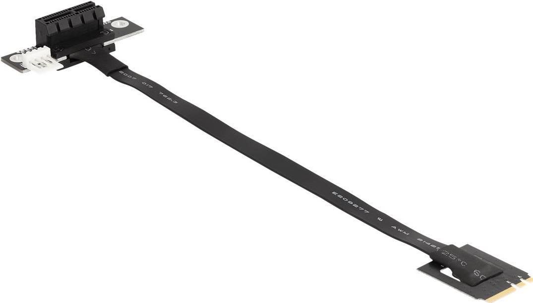 Mit diesem Adapter von Delock kann eine PCI-Express-Karte an einen M.2-Slot angeschlossen werden. Das flexible Kabel ermöglicht eine platzsparende Installation im Computergehäuse. Der zusätzliche Stromanschluss kann die PCIe-Karte bei Bedarf mit 12 V Spannung versorgen.