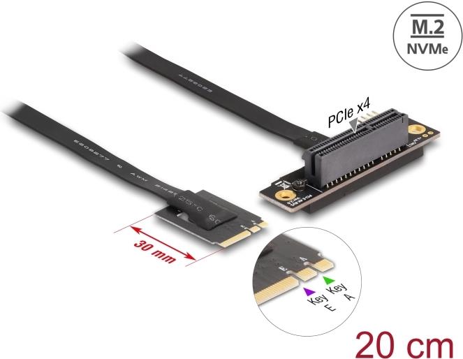 Mit diesem Adapter von Delock kann eine PCI-Express-Karte an einen M.2-Slot angeschlossen werden. Das flexible Kabel ermöglicht eine platzsparende Installation im Computergehäuse. Der zusätzliche Stromanschluss kann die PCIe-Karte bei Bedarf mit 12 V Spannung versorgen.