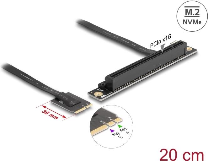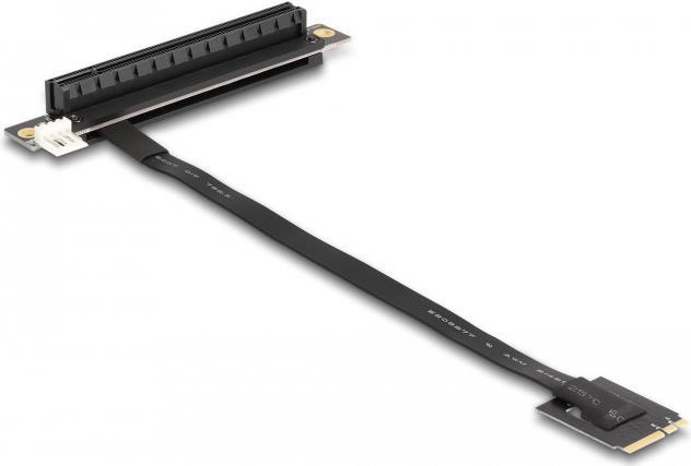 Mit diesem Adapter von Delock kann eine PCI-Express-Karte an einen M.2-Slot angeschlossen werden. Das flexible Kabel ermöglicht eine platzsparende Installation im Computergehäuse. Der zusätzliche Stromanschluss kann die PCIe-Karte bei Bedarf mit 12 V Spannung versorgen.