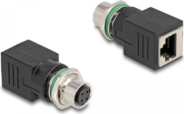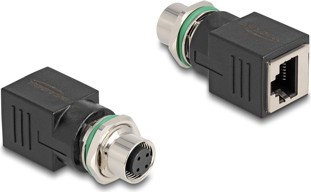 Delock M12 Adapter D-kodiert 4 Pin Buchse zu RJ45 Buchse gerade (60060)