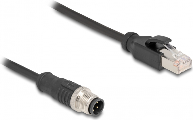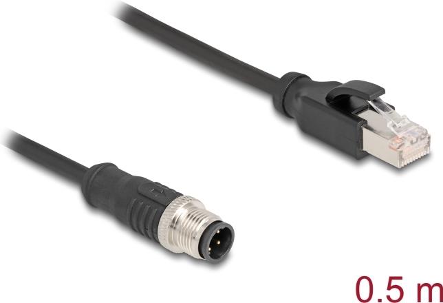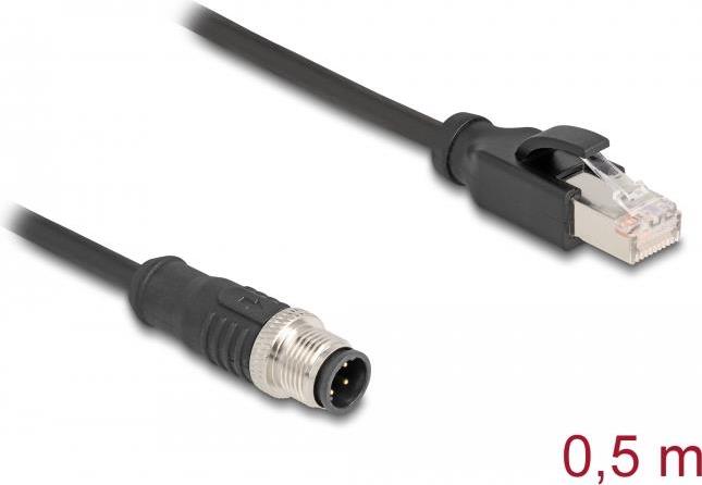 Delock M12 Adapterkabel D-kodiert 4 Pin Stecker zu RJ45 Stecker 50 cm (60073)