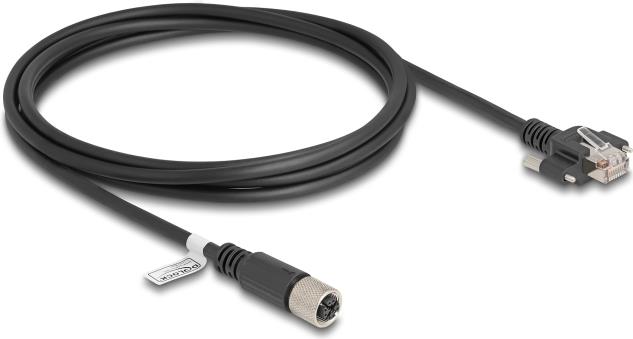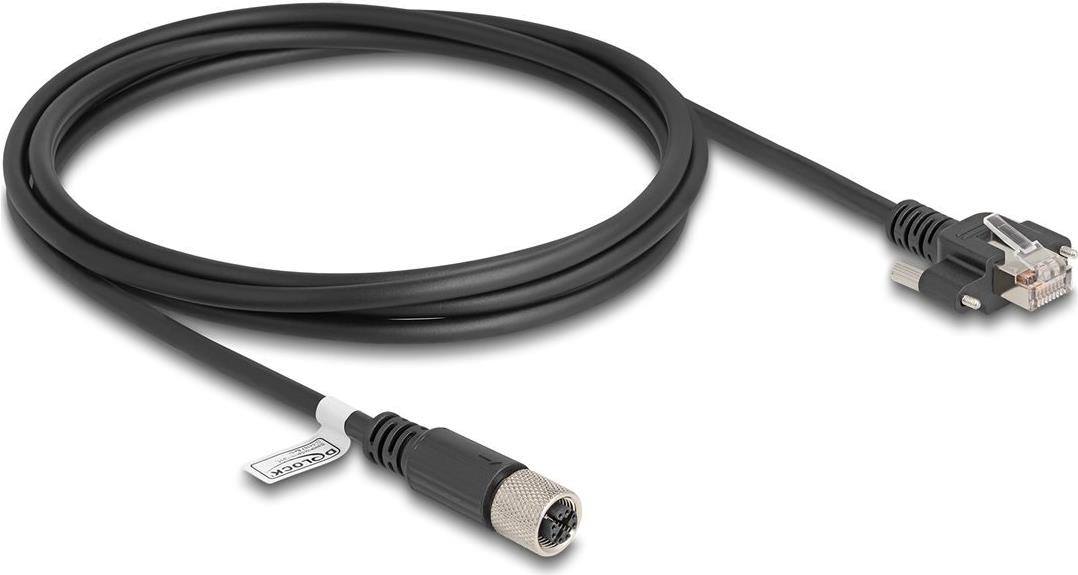 Delock - Netzwerkkabel - 8 pin M12-X (W) zu RJ-45 (M) schraubbar - 2,0m - 6,8 mm - S/FTP - CAT 6a - geformt, verseilt - Schwarz (80457)