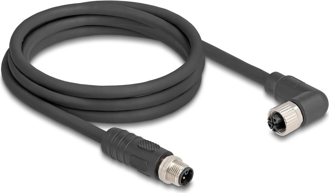 • Delock M12 Kabel L-kodiert 4 Pin Stecker gerade zu Buchse rechts gewinkelt PUR (80524)