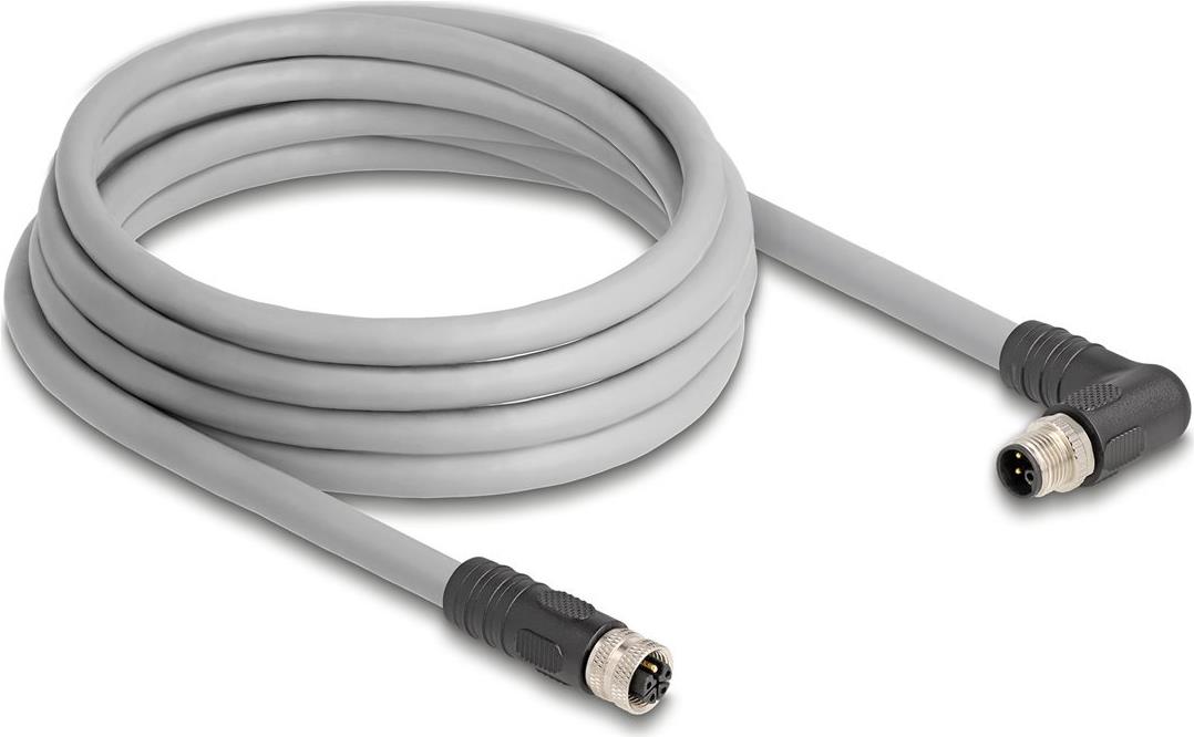 • Delock M12 Kabel L-kodiert 5 Pin Stecker rechts gewinkelt zu Buchse gerade PUR (80549)
