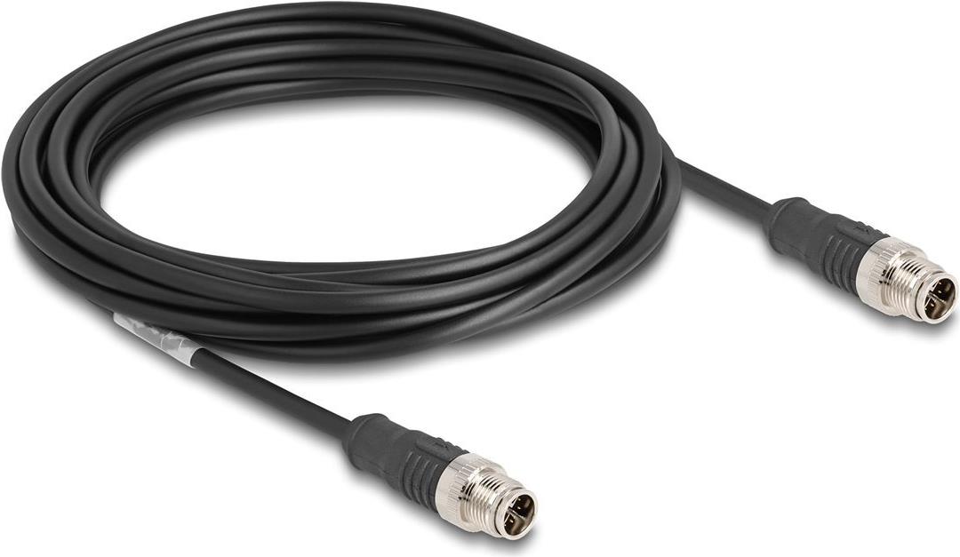 Delock - Netzwerkkabel - 8-polig M12 (M) zu 8-polig M12 (M) - 5,0m - 6 mm - S/FTP - CAT 5e - X-kodiert - Schwarz (80865)