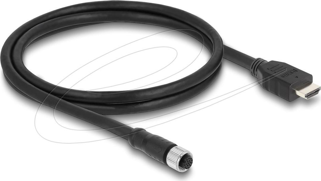 Das Delock-Videoadapterkabel vereint Funktionalität und Vielseitigkeit und eignet sich somit ideal zum Anschluss von Geräten mit unterschiedlichen Anschlusstypen. Dieses abgeschirmte Kabel verfügt an einem Ende über einen 17-poligen M12-Stecker und am anderen Ende über einen 19-poligen HDMI-Typ-A-Stecker und gewährleistet eine zuverlässige Videoübertragung. Mit Unterstützung für eine Auflösung von 1080p bei 60 Hz liefert es klare und lebendige Bilder. Ob für den professionellen Einsatz oder für private Setups – dieses Kabel erfüllt vielfältige Anschlussanforderungen.
