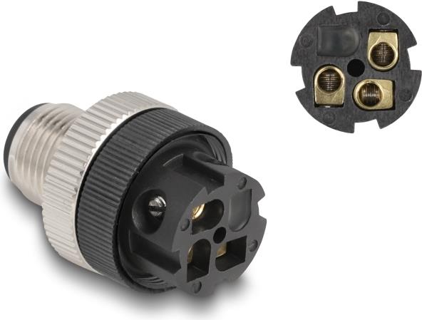 Delock M12 Steckverbinder A-kodiert 3 Pin Stecker zur Montage mit Schraubanschluss (60566)