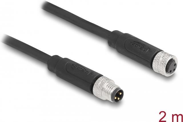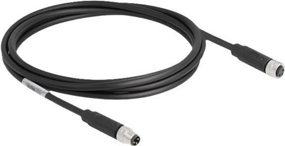 Delock - Patch-Kabel - 3-poliger M8 (M) zu 3-poliger M8 (W) - 2 m - 4.6 mm - STP - IP67 - Schwarz