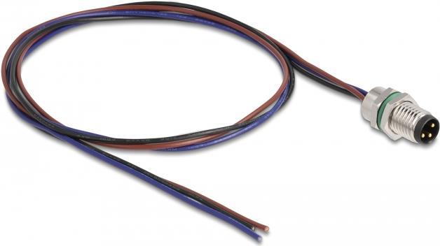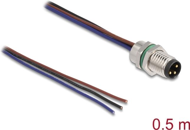 Delock M8 3 Pin Stecker für Panel mit offenen Kabeln A-kodiert 0,5 m (80147)