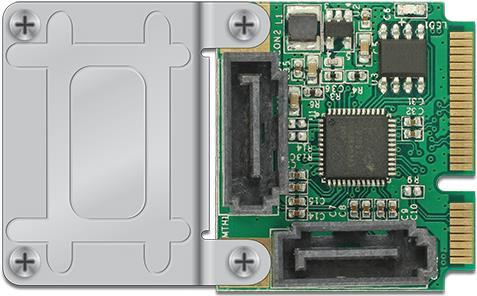 Dieses Mini PCIe Modul von Delock erweitert das System um zwei interne SATA 6 Gb/s Schnittstellen. Somit können SSDs, SATA Festplatten, Laufwerke oder ähnliches angeschlossen werden. Durch die beiliegende Verlängerung kann das Modul in full size Slots genutzt werden.
