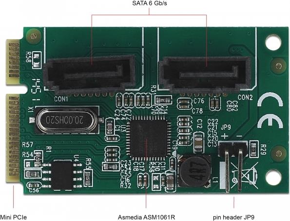 DeLOCK - Speichercontroller (RAID) - SATA 6Gb/s - PCIe 2.0 Mini Card |