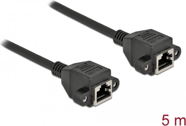 Delock - Netzwerkkabel - RJ-45 (W) schraubbar bis RJ-45 (W) schraubbar - 5,0m - S/FTP - CAT 6a - halogenfrei - Schwarz (87012)