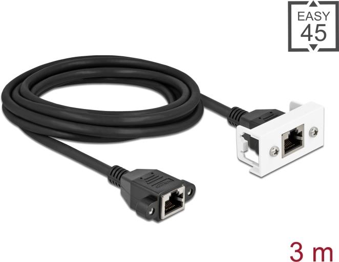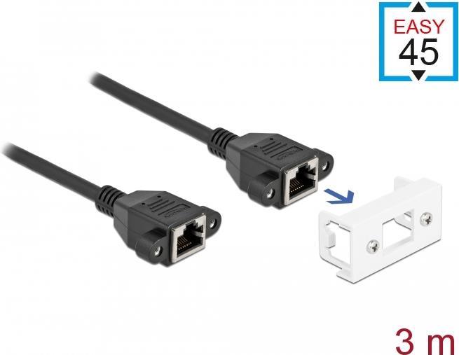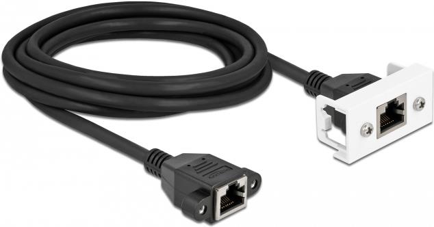 Delock - Netzwerkkabel - RJ-45 (W) mit Muttern zu RJ-45 (W) Paneel montierbar - 3,0m - S/FTP - CAT 6a - halogenfrei, Schnappverschluss - Schwarz / Weiß (87136)