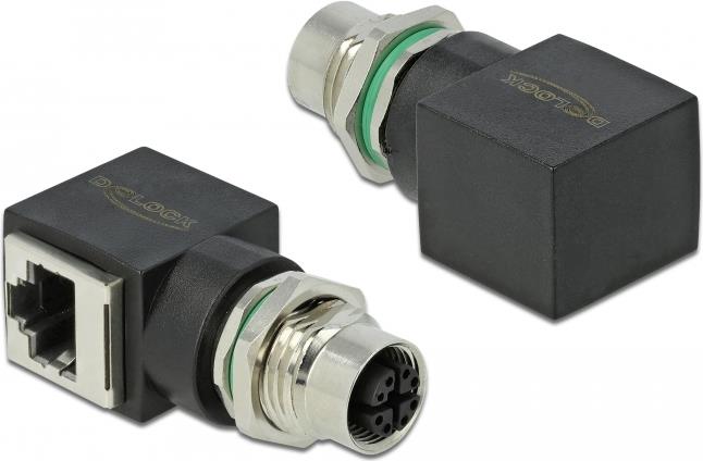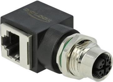 DeLOCK - Netzwerkadapter - 8-polig M12 (W) gerade bis RJ-45 (W) gewinkelt - CAT 6a - Schwarz (66316)