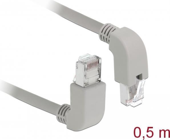 DeLOCK - Patch-Kabel - RJ-45 (M) nach oben gewinkelt bis RJ-45 (M) nach unten gewinkelt - 50 cm - 0.56 cm - SF/UTP - CAT 5e - halogenfrei, geformt, verseilt - Grau